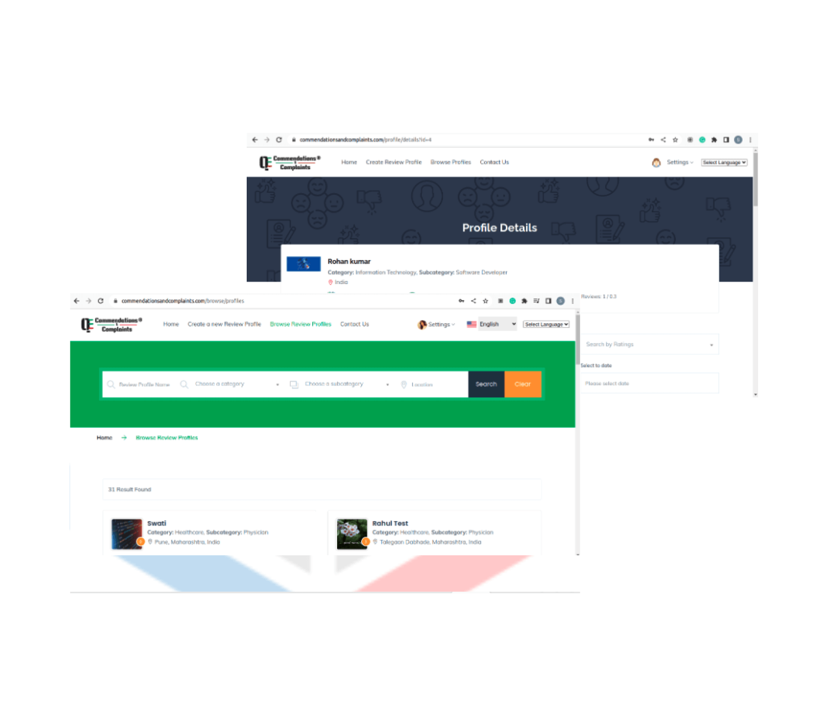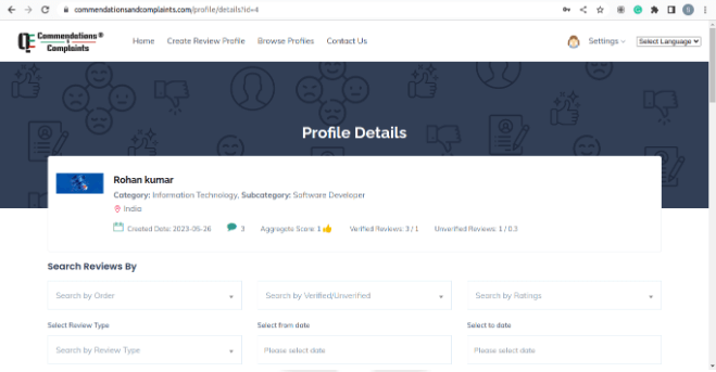 Complaints & Commendation platform we are using the star rating system (e.g., stars) is implemented, so users can rate the reviews' comments based on their experience.